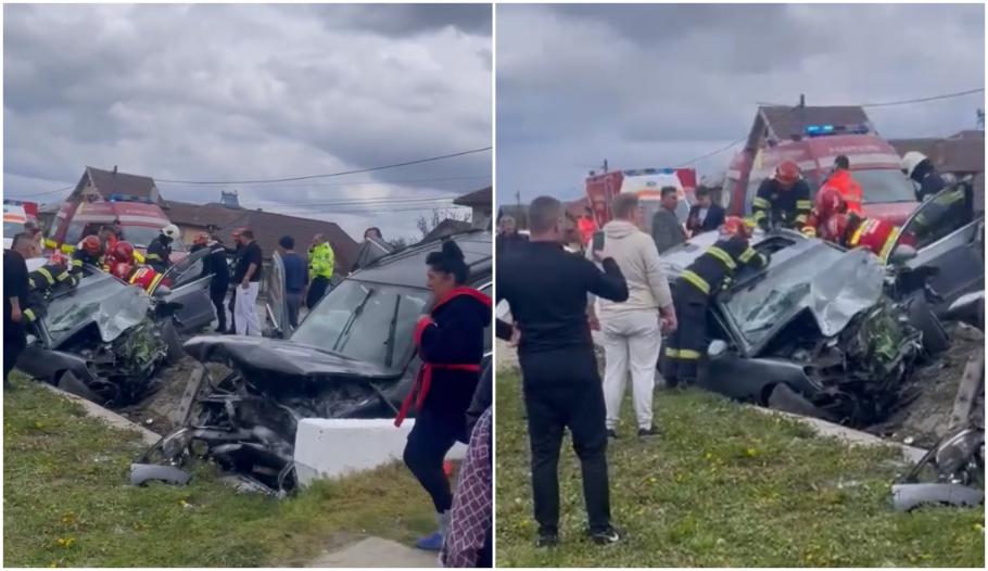 Accident cumplit cu 7 victime în Gorj. Un şofer a intrat pe contrasens şi a izbit puternic două maşini, care au ajuns în şanţul de pe marginea drumului