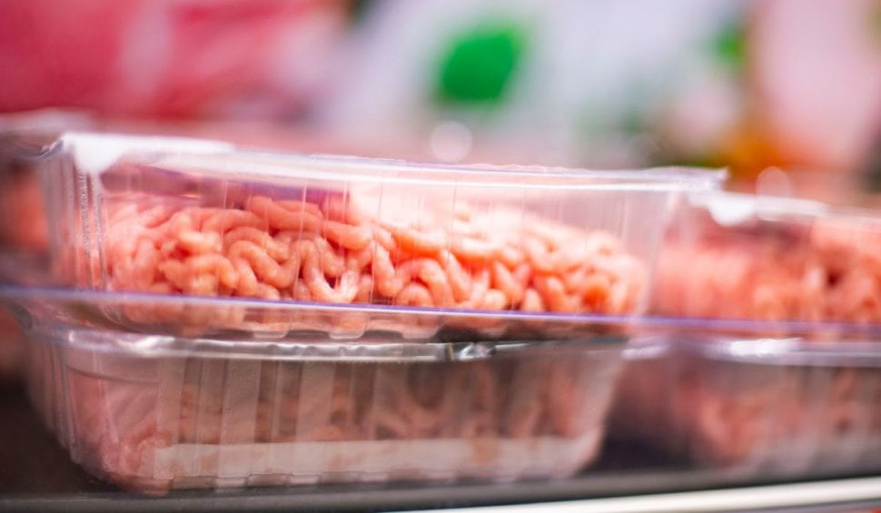 Carne cu plastic cumpărată dintr-un supermarket din Capitală. Revoltată, femeia s-a întors cu cele două caserole în magazin şi le-a cerut angajaţilor să scoată carnea de la vânzare.