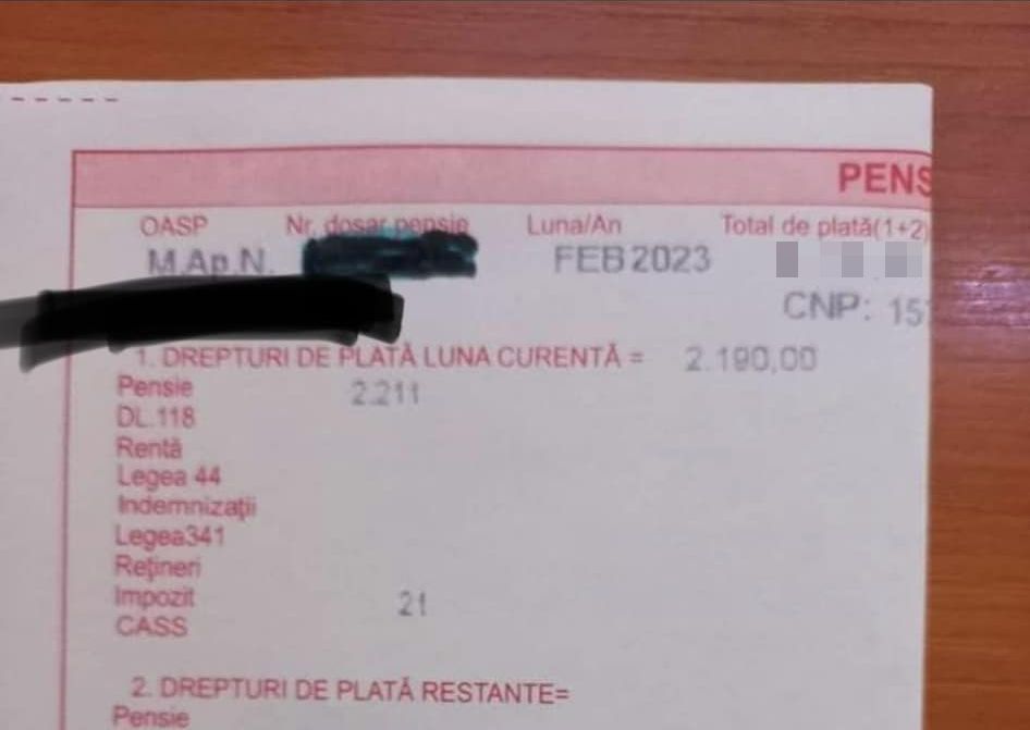 Ce pensie primește un fost cadru MApN. Talonul de pensie, făcut public