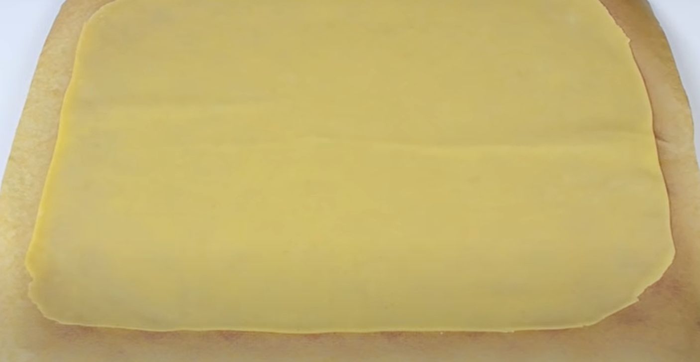 Aluatul se împarte în trei părți, cât mai egale, ce urmează să fie întins. Acestea se așază pe o foaie de copt și se întind într-o formă dreptunghiulară, pentru a putea fi coaptă pe fundul unei tăvi. Când aluatul e bine întins, aceasta se înțeapă cu o furculiță pentru a nu-i permite să se umfle.