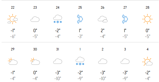 În Predeal nu va ninge în prima zi de Crăciun, însă este foarte posibil ca poleiul să se formeze, meteorologii anunțând ploaie înghețată pe data de 25 decembrie. În noaptea de Revelion se anunță ger cumplit, temperaturile minime ajungând până la – 10 grade. Zăpada va veni chiar în prima zi a anului, pe 1 ianuarie fiind prognozate ninsori abundente.