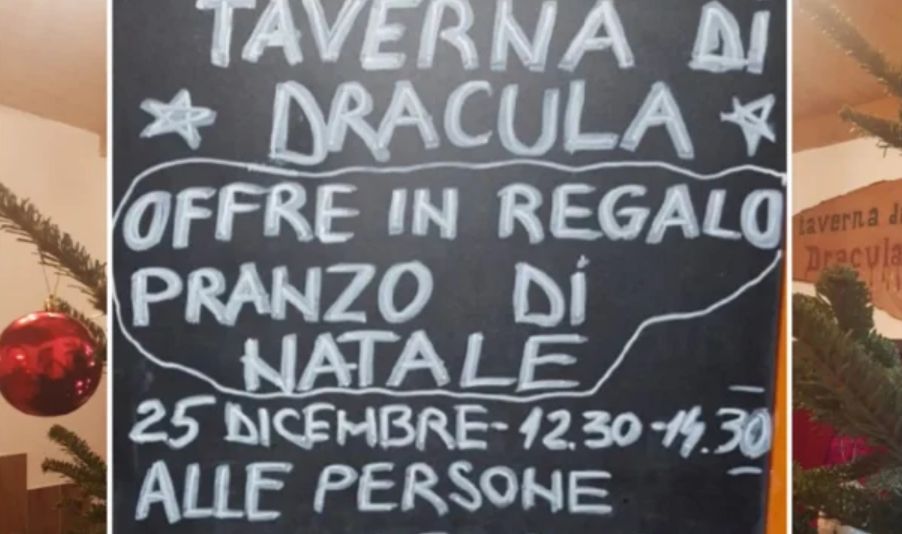 „De Crăciun poți face mai mult…”, au anunțat proprietarii „Taverna di Dracula“, restaurantul care a luat această minunată inițiativă. „Pe 25 decembrie, de la 12:30 la 14:30 Taverna lui Dracula oferă cadou o masă de prânz de Crăciun persoanelor în vârstă, singuratice și nevoiașe”. Și apoi adaugă: „Crăciunul acesta nu vei rămâne singur. Se va face prânz în companie și cu bun gust”.