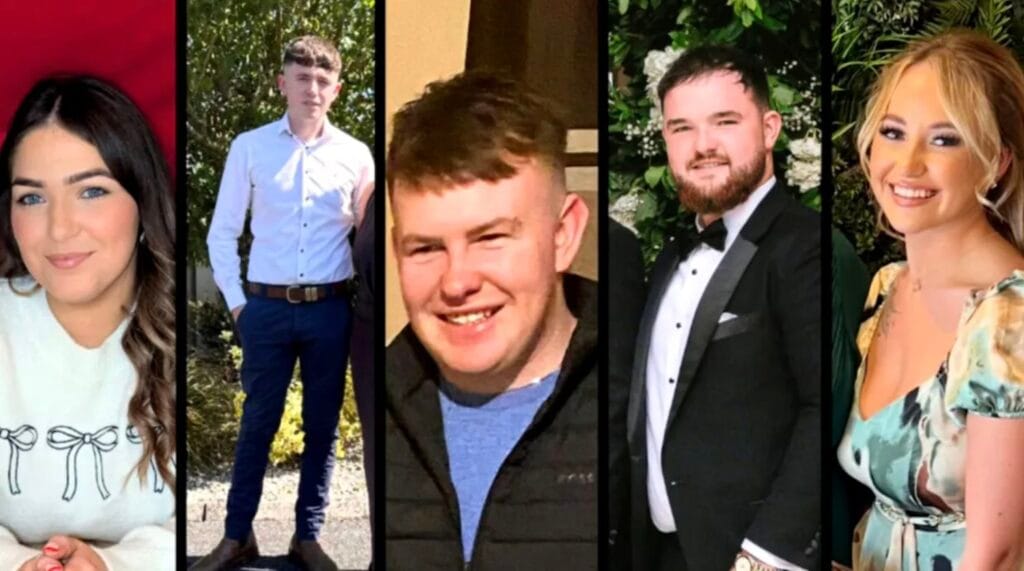 Nenorocirea s-a petrecut sâmbătă seară, puițin după ora 21:00, în afara orașului Gibstown, comitetul Louth din Irlanda. Chloe Hipson, în vârstă de 21 de ani, din Lanarkshire, Scoția, a murit alături de Chloe McGee, în vârstă de 23 de ani, Shay Duffy (21 de ani) Alan McCluskey (23 de ani) și Dylan Commins, în vârstă de 23 de ani, când Volkswagen Golf în care se aflau s-a ciocnit cu un Toyota Land Cruiser din sens opus.