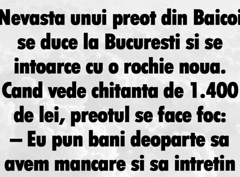Bancul zilei | Nevasta unui preot din Băicoi se duce la București și se întoarce cu o rochie nouă, de 1.400 de lei