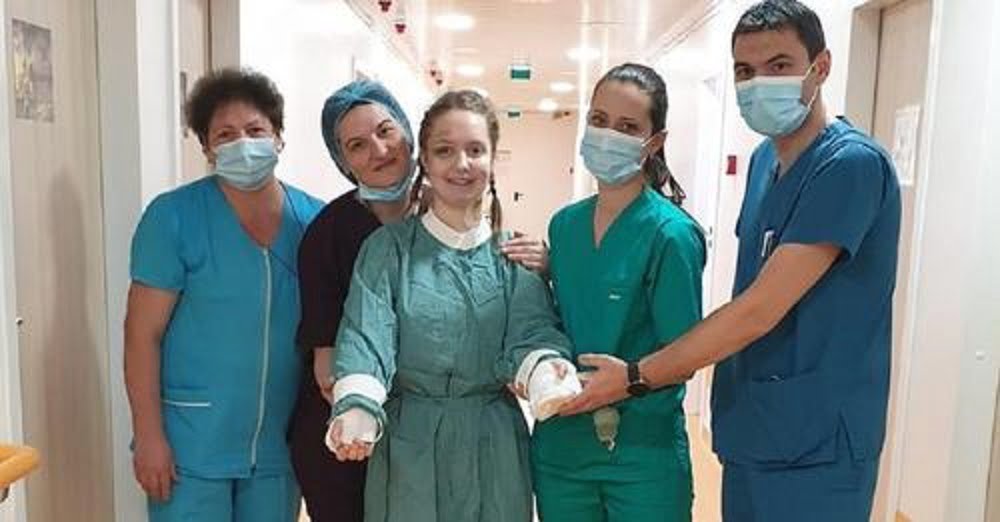 Miracol după accidentul din Paşcani. Au apărut primele imagini cu Alexia, fata cu mâinile amputate după ce autocarul în care se afla s-a răsturnat. Adolescenta de 15 ani a ieşit pe holurile spitalului din Iaşi însoţită de medicul care i-a dat a doua şansă la viaţă şi de asistente.