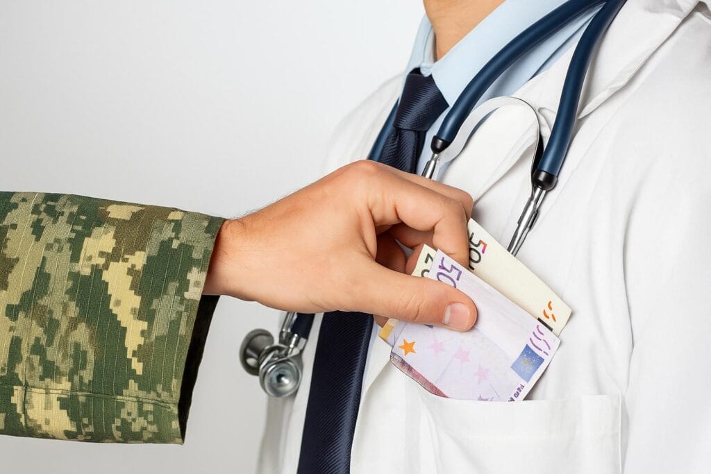 Procurorii de la Direcţia Naţională Anticorupţie, secţia militară, spun că medicul primea sume între 200 de lei şi 100 de euro pentru a îi ajuta pe unii militari să îşi atingă scopul ilegal. Plicurile cu bani îi erau puse pe birou, iar el le ascundea sub tastatură, spun jurnaliştii de la G4Media.