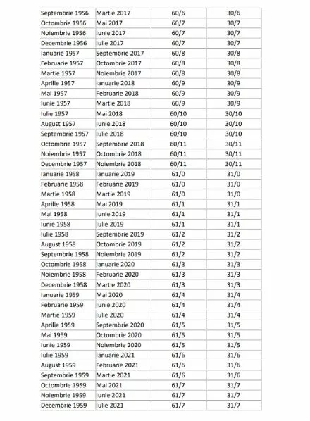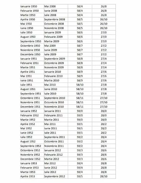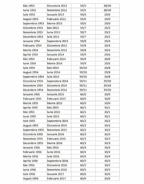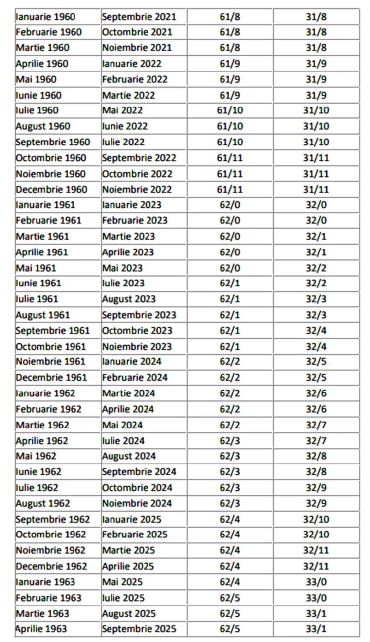 În galeria foto a articolului, găsiți un tabel pentru femei și bărbați, în care puteți afla stagiul complet de cotizare, în funcție de luna și anul nașterii, dar și de perioada pensionării. Numărul care vă interesează pentru a aplica formula de calcul se află în ultima coloană. Acela va determina cați bani ar trebui să primiți la pensie.