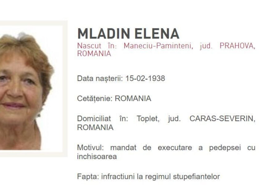 Cea mai bătrână infractoare din România. Are 84 de ani și este căutată pentru trafic de droguri