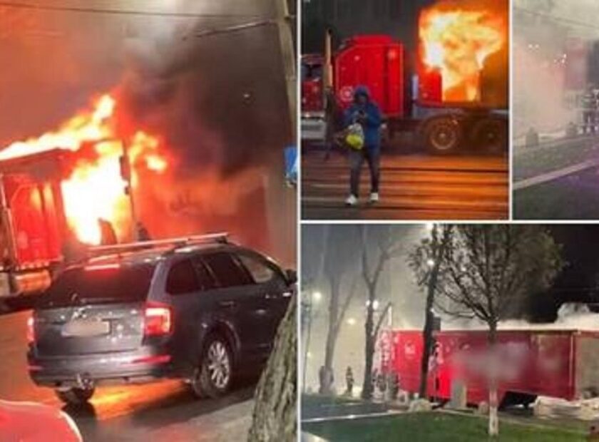 Camionul lui Moş Crăciun, în flăcări pe şoseaua Giurgiului. Şoferul a reuşit să decupleze la timp remorca, înainte ca focul să ajungă şi la cabină