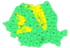 Codul galben de vânt este valabil de duminică noaptea, ora 23.00, până marţi dimineaţa, ora 10.00, în Munţii Apuseni, Carpaţii Orientali şi jumătatea de vest a Carpaţilor Meridionali.